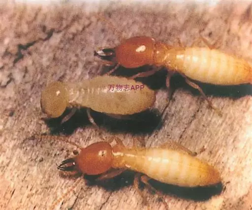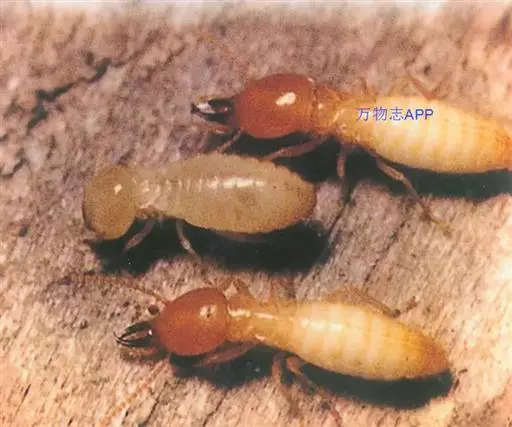 (5)其兵蚁最大的特点是额腺发达,头部前端有大形的囟,受掠扰时囟流出大量乳白色的酸性浆汁,能穿过石灰泥质,或用来抵御来犯之敌,故有乳白蚁之称;