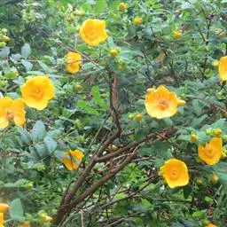 金丝梅是金丝桃科金丝桃属丛状灌木。全株无毛,枝条纵线棱,褐色或红褐色;单叶对生,…