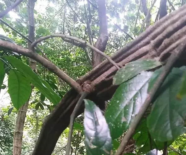 它是一种常年生的植物,通常缠绕在树干上,藤长约5-6m,藤面呈灰白色,叶色深绿,叶面宽约3-4cm,呈椭圆形,比一般树叶稍厚。砍断藤子后,可以看到条条小筋的断痕,并很快就会流出可供饮用的清水。生活在西双版纳的傣族猎人进山,一般不带水壶,就靠这种天然水壶中的清水解渴。