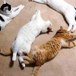 5、躺著,肚皮向上,脚也平平的和身体成一直线--我信任你,你是可以依赖的人所以我要撒娇啦。.放松状