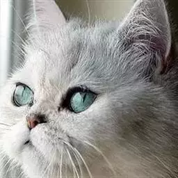 CREAM CAMEO TABBY (更淡的Cameo): 底毛为白色,其他总体为灰白色,奶油色的斑纹,鼻子与爪垫为粉色,眼睛颜色为亮金色。