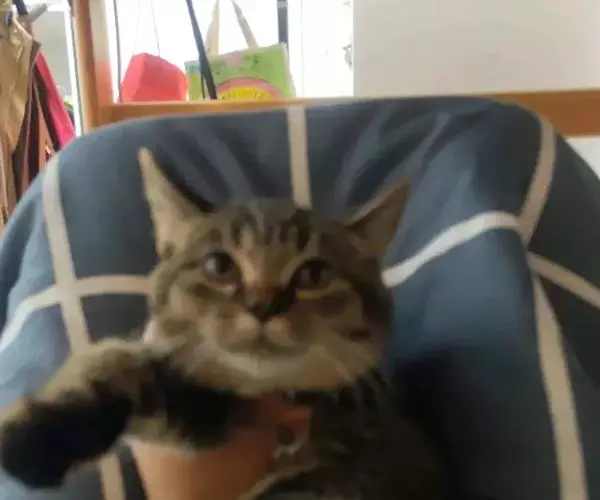 3、当虎斑猫自愿睡在主人的怀抱里时,它的心情是最愉快的,此时它的尾巴会大幅度的缓慢摆动,即使在睡梦中,虎斑猫也会在偶尔晃晃尾巴。当虎斑猫有求于你比如是讨东西吃时,它会挨在你脚边磨蹭,尾巴高高耸立,尾尖轻摇,喵语呢喃,让人顿生爱怜之情。