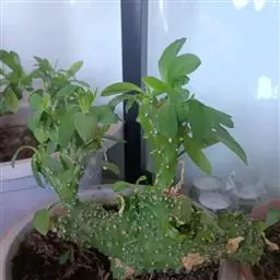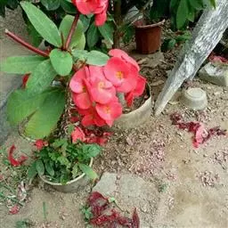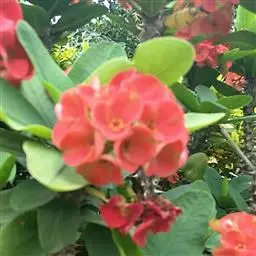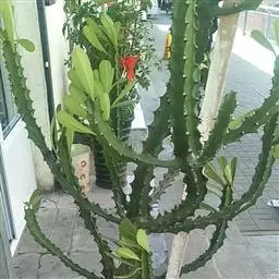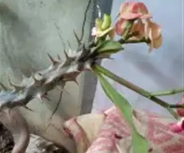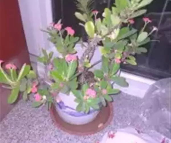 虎刺梅:别称铁海棠,是蔓生灌木植物。茎多分枝,长60-100厘米,直径5-10毫米,具纵棱,密生硬…
