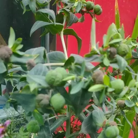 蒴果三棱状卵形,长约3. 5毫米,直径约4毫米,平滑无毛,成熟时分裂为3个分果爿。种子卵柱状,长约2.5毫米,直径约2毫米,灰褐色,具微小的疣点;无种阜。花果期全年。