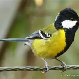 相似种绿背山雀体型较大,腹有宽的黑色纵带,野外容易识别。