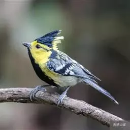 黄颊山雀是雀形目山雀科山雀属鸟类。雄鸟额、头顶和羽冠为具有光泽的黑色;额基、眼先、眉纹、脸颊和耳羽等头颈侧为鲜艳的明黄色;贯眼纹黑色;后颈亦具一黄斑;上体灰黄绿色,羽缘黑色;尾羽黑色具蓝灰色羽缘,基部白色;下体颏、喉至上胸为富有金属光泽的黑色;胸下有一黑色宽中央纵纹,一直延伸至肛周;其余下体白色;胸侧和两胁染黄色或蓝灰色;虹膜暗褐色;喙黑色;脚铅蓝灰色至铅黑色。雌鸟似雄鸟,但上体光泽较弱,胸腹部黑色纵带不明显。黄颊山雀分布于亚洲东南部地区,在中国分布于华中、华南和西南等地。栖息于中低山常绿阔叶林、针叶林和混交林中,也见于山麓疏林灌丛草坡或茶园、果园等地。常成对或小群活动,也和大山雀等其他小型鸟类混群,活跃地在乔灌木枝叶间飞翔跳跃。主食鳞翅目和鞘翅目等昆虫,兼食植物种实。繁殖期在4-6月,营巢于树洞、岩隙或墙缝中。窝卵数为3-7枚,卵灰白色且有红褐斑,雏鸟晚成。黄颊山雀被列入中国林业局200