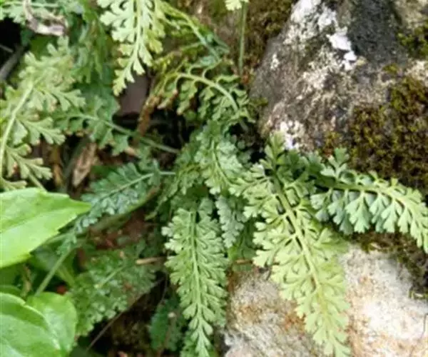 孢子囊群狭线形,长2.5-5毫米,深棕色,每小羽片或裂片1枚,位于小羽片的中部上侧边;囊群盖狭线形,灰绿色,膜质,全缘,开向叶边,宿存 。
