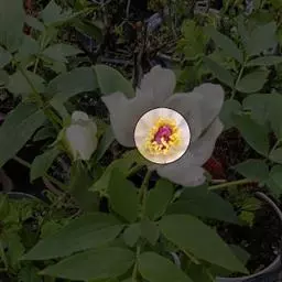 白花赤芍在萌芽阶段有一种淡淡的粉色,其后台才开出纯白色的花朵。