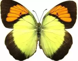 橙粉蝶是粉蝶科橙粉蝶属的一种动物,雌雄异型。雄蝶有2种形态,一种前翅正面端半部黑色,基半部为黄色,…