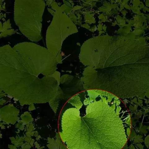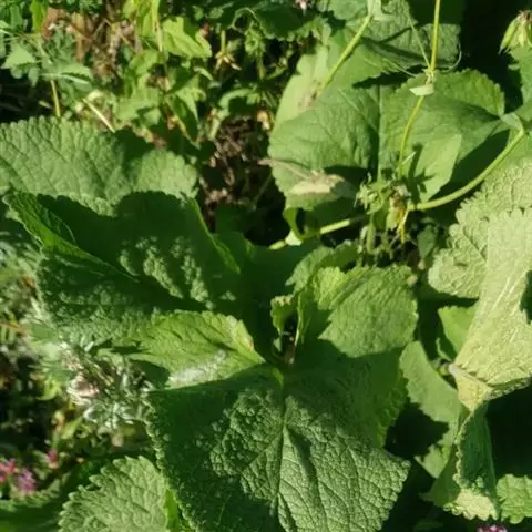 多年生草本,高15-45cm。茎直立,四棱形,疏被倒向短硬毛。茎生叶对生;叶柄长1.5-10cm;叶片卵圆形、卵形或卵状长圆形,长5-17.5cm,宽4.2-11cm,先端急尖或钝,基部心形或浅心形,边缘具深圆齿,上面被短纤毛,下面沿脉上被具节疏柔毛。苞叶卵形至卵状披针形,超过花序;叶柄长不及1cm。轮伞花序多花,1-2个生于主茎顶部;苞片线状钻形,较萼为短,边缘密被具节缘毛;花萼管状钟形,长1.8-2.8cm,外面被具节疏柔毛,具5齿,萼齿先端微凹,具小刺尖,齿间小齿先端微凹,边缘被微柔毛;花冠淡黄色,长3.7-5cm,唇形,外面疏被短柔毛,内面无毛环,上唇边缘具小齿,下唇较大,外面被短柔毛,3圆齿,中裂片较大,圆卵形,边缘为不整齐的波状,侧裂片三角形;雄蕊4,二强,前对较长,花丝具长毛,无附属物;雌蕊子房2,合生,花柱单一,柱头2裂。小坚果无毛。花期6-7月,果期8-11月。