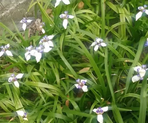 巴西鸢尾株高约40~50公分,叶从基部根茎处抽出,呈扇形排列。叶宽约2公分,革质,深绿色;花期约春至夏季。 巴西鸢尾的繁殖方式很奇特,像吊兰一样,在开花后会从花鞘内长出小苗。