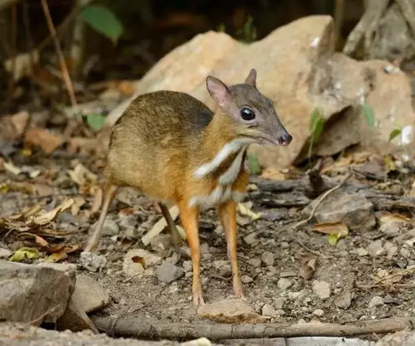 鼷鹿是介于骆驼科与鹿科之间一个珍稀物种,是地球上最小的偶蹄动物,其外形就如马鹿的袖珍版,体形只有兔子般大小,由于其保持了鹿科动物的很多原始特性,因而有着极高的科研价值。