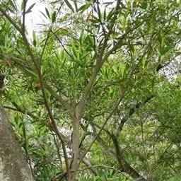海南杜英,属杜英科杜英属的常绿小乔木。树冠整齐成层,枝条无毛。叶子聚集在顶端生长,狭披针形或倒披针…