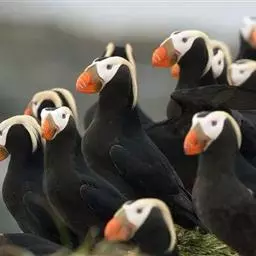 凤头海雀:是鸟纲、鸻形目、海雀科的一种海鸟。体重211-322克,体长18-20厘米。前趾间有蹼膜,…
