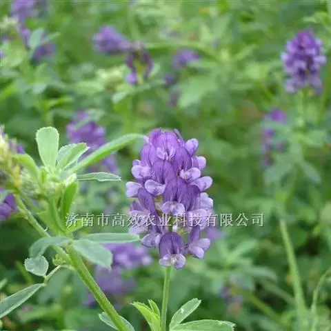 天蓝苜蓿是各种畜禽均喜食的优质牧草,营养价值很高,不论青饲、放牧或是调制干草和青贮,适口性均好,因而被誉为“牧草之王”。天蓝苜蓿粗蛋白质含量高,且消化率可达70-80%。蛋白质中氨基酸种类齐全,含量丰富,其中赖氨酸的含量是玉米籽实的5。7倍,色氨酸和蛋氨酸也显著高于玉米。另外,天蓝苜蓿富含多种维生素和微量元素,同时还含有一些未知促生长因子,对畜禽的生长发育均具良好作用。天蓝苜蓿的营养价值随天蓝苜蓿的生育阶段而异。幼嫩时粗蛋白质含量高,而粗纤维含量低。但随着生长阶段的延长,粗蛋白质含量减少,而粗纤维含量显著增加,且茎叶比增大。初花期刈割,天蓝苜蓿干草粗蛋白含量18%以上,酸性洗涤纤维含量35%以下,中性洗涤纤维含量45%以下,可消化干物质含量60%以上,相对饲用价值125以上。