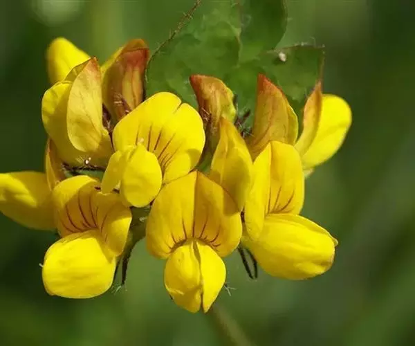 花序小头状,具花10-20朵;总花梗细,挺直,比叶长,密被贴伏柔毛;苞片刺毛状,甚小;花长2-2.2毫米;花梗短,长不到1毫米;萼钟形,长约2毫米,密被毛,萼齿线状披针形,稍不等长,比萼筒略长或等长;花冠黄色,旗瓣近圆形,顶端微凹,冀瓣和龙骨瓣近等长,均比旗瓣短:子房阔卵形,被毛,花柱弯曲,胚珠1粒。荚果肾形,长3毫米,宽2毫米,表面具同心弧形脉纹,被稀疏毛,熟时变黑;有种子1粒。种子卵形,褐色,平滑。花期7-9月,果期8-10月。