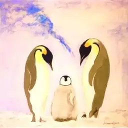 帝企鹅(学名:Aptenodytes forsteri):也称皇帝企鹅,是企鹅家族中个体最大的物种,一般身高在90厘米以上,最大可达到120厘米,体重可达50千克。其形态特征是脖子底下有一片橙黄色羽毛,向下逐渐变淡,耳朵后部最深。全身色泽协调。颈部为淡黄色,耳朵的羽毛鲜黄橘色,腹部乳白色,背部及鳍状肢则是黑色,鸟喙的下方是鲜桔色。帝企鹅在南极严寒的冬季冰上繁殖后代,雌企鹅每次产1枚蛋,雄企鹅孵蛋。雄帝企鹅双腿和腹部下方之间有一块布满血管的紫色皮肤的育儿袋,能让蛋在环境温度低达零下40摄氏度的低温中保持在舒适的36摄氏度。