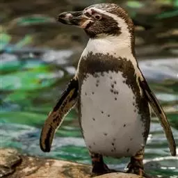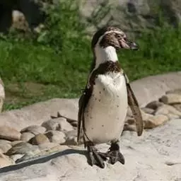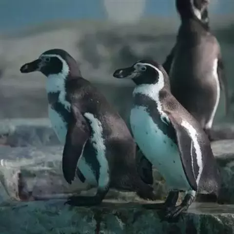 洪堡企鹅是一种分布于南美洲的企鹅,名称源自第一个介绍该物种给西方学界的德国自然科学家亚历山大·冯·洪堡。前肢为鳍脚,适于划水。具鳞片状羽毛,羽轴宽而短,羽片狭窄而密集,均匀分布于体表。骨骼沉重而不充气,胸骨具有发达的龙骨突起,内含有多脂肪的骨髓。尾羽短。跗跖短,并移至躯体后方。跗间具蹼。上嘴的角质部由3个角质片组成。舌表面布满钉状乳头,适于取食甲壳类、乌贼和鱼类等。属易危物种,自然界数量在3,300-12,000 只之间。主要在秘鲁和智利沿岸繁殖。