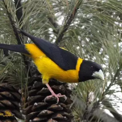 黄颈拟蜡嘴雀:小型鸟类,体长20-22厘米。嘴粗大,黑色。雄鸟整个头、颈、颏、喉和上胸辉黑色,…