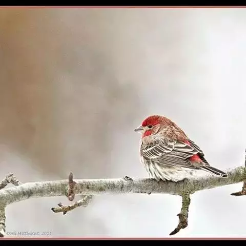 喜马拉雅白眉朱雀:小型鸟类,体长15-17厘米,体重24-35克。额基、眼先深红色,…