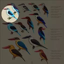 白领翡翠:有50个亚种。体长18厘米,体重35-40克。是一种蓝白色翡翠鸟。…