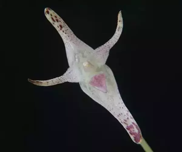齿瓣石豆兰(学名:Bulbophyllum levinei Schltr.):根状茎纤细,匍匐生根。假鳞茎在根状茎上聚生,近圆柱形或瓶状,顶生1枚叶,基部被鞘或鞘腐烂后残留的纤维。叶薄革质,狭长圆形或倒卵状披针形。花葶从假鳞茎基部发出,纤细,直立,光滑无毛,高出叶外;总状花序缩短呈伞状,常具2-6朵花;花膜质,白色带紫;花瓣靠合于萼片,卵状披针形,长达3.5毫米,中部宽1.5毫米,边缘具细齿,具1条脉,先端长急尖;唇瓣近肉质,中部以下具凹槽,向外下弯,摊平后为披针形。花期5-8月。