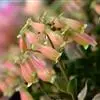 花期一般在每年冬季12月至次年3-4月,每个枝头交错对生3-5个聚伞花序;每个枝头交错对生3-5个聚伞花序;每个花序直径约10厘米左右,有小花50余朵,每朵小花花冠直径约1厘米,花瓣4枚,浅粉红色,钟状花筒长1.5-2厘米,向下开放;雄蕊4或8枚,呈止方形排列,花丝紫红色,花药深灰色;雌蕊1枚,橙黄色,先端开裂成4瓣;每朵小花大约开放7-10天,10℃以下低温能有效延长花期,但叶色转为红褐。若养分充足,春季能次分化花芽、整个花期持续长达4-5个月花开败后,花瓣风干呈蓝紫色,宿存不落。