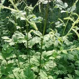 升麻根状茎粗壮,坚实,表面黑色,有许多内陷的圆洞状老茎残迹。茎高1-2米,基部粗达1.4厘米,微具槽,分枝,被短柔毛。叶为二至三回三出状羽状复叶;茎下部叶的叶片三角形,宽达30厘米;顶生小叶具长柄,菱形,长7-10厘米,宽4-7厘米,常浅裂,边缘有锯齿,侧生小叶具短柄或无柄,斜卵形,比顶生小叶略小,表面无毛,背面沿脉疏被白色柔毛;叶柄长达15厘米。7-9月开花,8-10月结果。生海拔1700-2300米间的山地林缘、林中或路旁草丛中。升麻喜温暖湿润气候。耐寒,当年幼苗在-25℃低温下能安全越冬。幼苗期怕强光直射,开花结果期需要充足光照,怕涝,忌土壤干旱,喜微酸性或中性的腐殖质土,在碱性或重粘土中栽培生长不良。