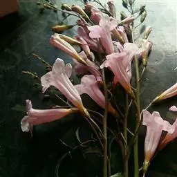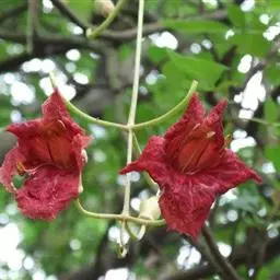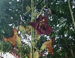 子房2室,胚珠在每一胎座上1-2列;花柱长5.5-6.5厘米,柱头扇形,薄膜质,2片裂。蒴果圆锥状,长6-8厘米,粗约1厘米,具不明显的棱纹。种子阔卵圆形、不增厚,淡褐色,小叶对数少。花期6-7月,果期7-9月。