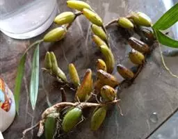 苞舌兰:假鳞茎扁球形,通常粗1-2.5厘米,被革质鳞片状鞘,顶生1-3枚叶。叶带状或狭披针形,…
