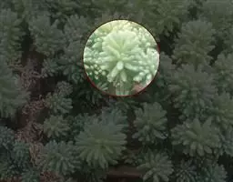 薄雪万年草别名矶小松,景天科景天属多年生草本植物,其细小的蓝绿色棒状叶片环绕生长于茎端,…