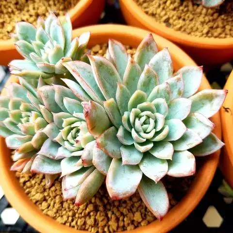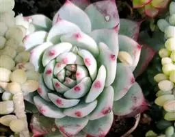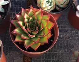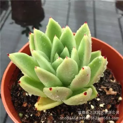 大和锦是景天科拟石莲花属的多肉植物。肉质叶排成紧密的莲座状,广卵形至散三角卵形,背面突起呈龙骨状,…