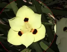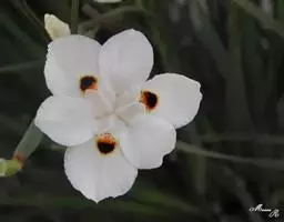 双色野鸢尾为多年生草本植物,叶子呈剑状淡绿色。…