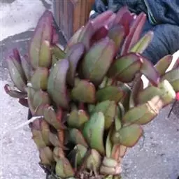 棒叶落地生根是景天科、落地生根属植物。茎直立、粉褐色。叶圆棒形,上表面有沟、粉色,有红褐斑。…