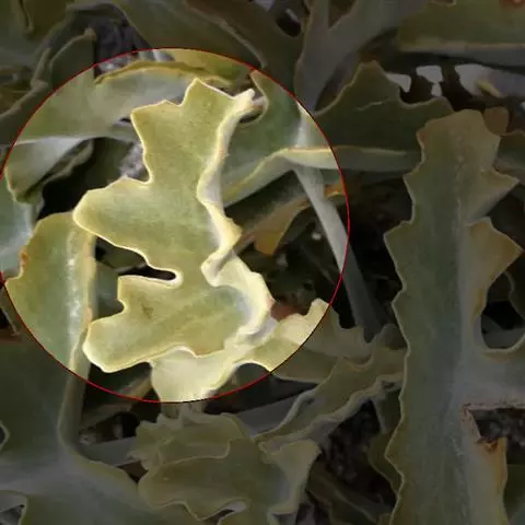 红缘莲花掌属蔷薇目、景天科植物,原产大西洋的加那利群岛。质厚,蓝绿色,被白霜,叶缘红褐色。聚伞花序,…
