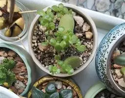 玉米石是景天科、景天属植物。多年生草本多浆植物。植株低矮丛生,多分枝。叶膨大成圆筒形、卵形或近小球形,…