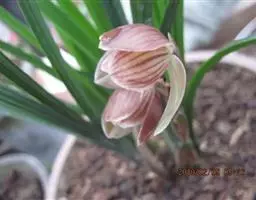 带唇兰:假鳞茎暗紫色,圆柱形,罕为卵状圆锥形,被膜质鞘,顶生1枚叶。叶狭长圆形或椭圆状披针形。…