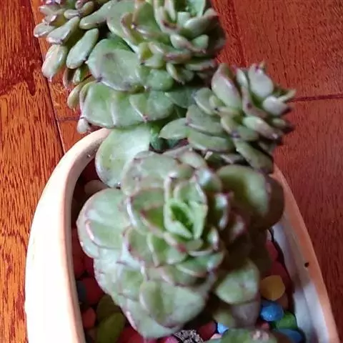小红衣是景天科、拟石莲花属的一种多肉植物。叶片匙形,扁平细长,叶表具白粉,有明显的半透明边缘,…