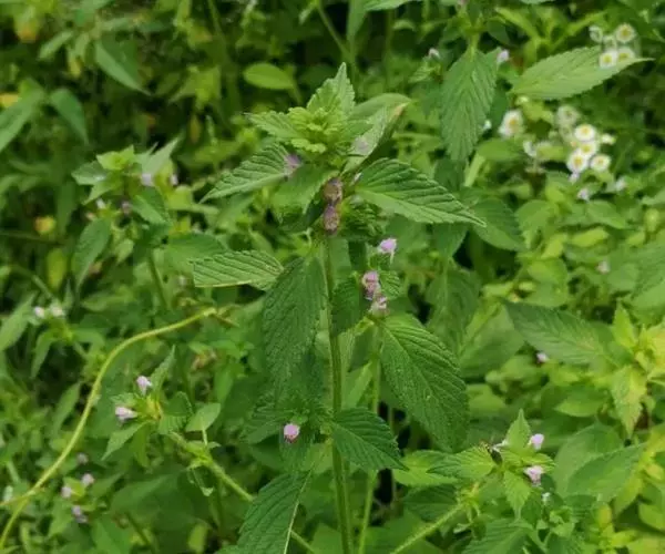 草本。茎直立,通常高20-60厘米,有时可达1米,多少分枝,粗壮,钝四棱形,具槽,在节上加粗但在干时则明显收缢,此处密被多节长刚毛,节间其余部分混生下向具节长刚毛及贴生的短柔毛,在茎上部间或尚混杂腺毛。茎叶卵圆状披针形或披针形,通常长3-8.5厘米,宽1.5-4厘米,先端锐尖或渐尖,基部渐狭至宽楔形,边缘有规则的圆齿状锯齿,上面贴生具节刚毛,下而疏生微柔毛,间夹有腺点,侧脉6-8对,上面不明显,下面突出;叶柄长1-2.5厘米,腹平背凸,被短柔毛。轮伞花序腋生,多花密集;小苞片线形至披针形,长3-6毫米,基部稍膜质,先端刺尖,边缘有刚毛。花萼管状钟形,连齿长约1厘米,外面有平伸的刚毛,内面被微柔毛,齿5,近等大,长约5毫米,与萼筒近等长,长三角形,先端为长刺状。花冠白、黄或粉紫红色,长约1.4厘米,冠筒漏斗状,喉部增大,长8毫米,冠檐二唇形,上唇卵圆形,先端钝,具不等的数齿,外被刚毛,下唇3裂,中裂片长圆形,宽度与侧裂片近相等,约2毫米宽,先端明显微凹,紫纹直达边缘,基部略收缩,侧裂片长圆形,全缘。雄蕊4,均延伸至上唇片之下,花丝丝状,下部被小疏毛,花药卵圆形,2室,二瓣横裂,内瓣较小,具纤毛。花柱先端近相等2裂。花盘前方呈指状增大。子房无毛,褐色。小坚果倒卵状三棱形,褐色,有秕鳞。花期7-9月,果期9月。