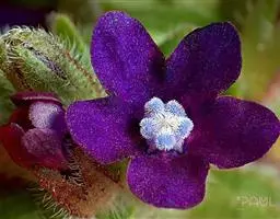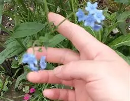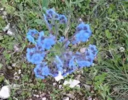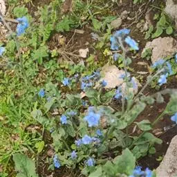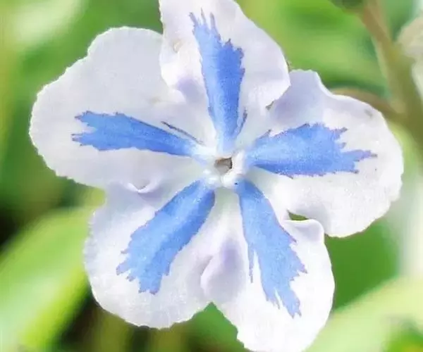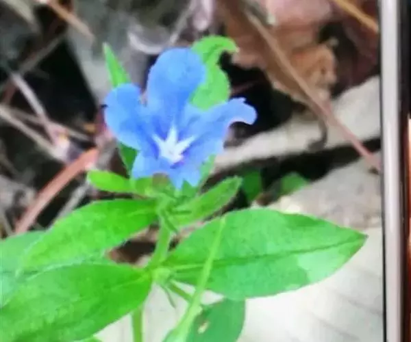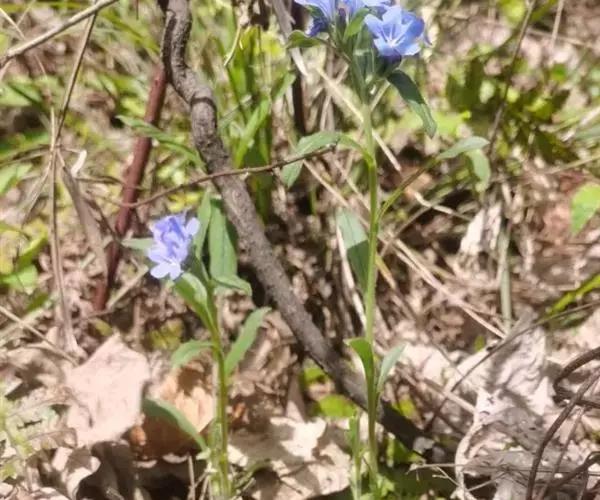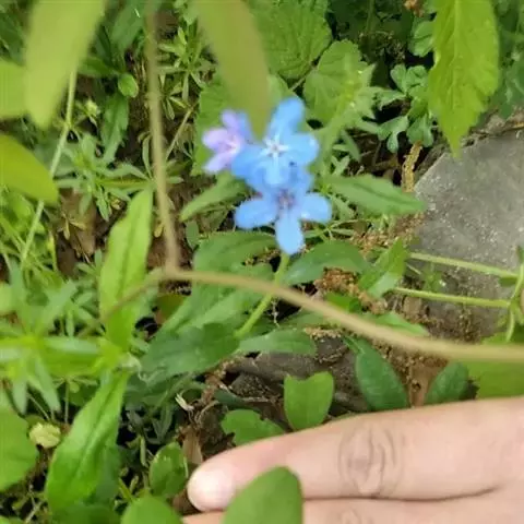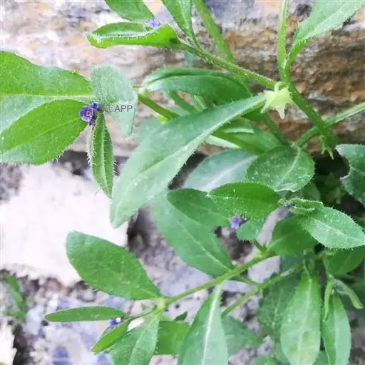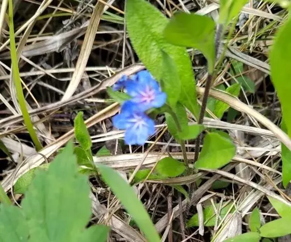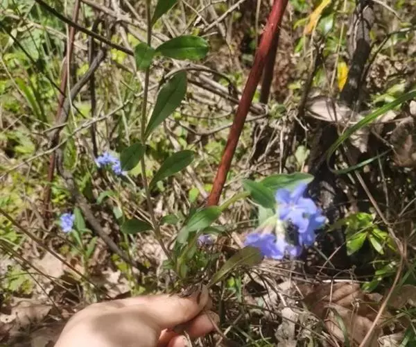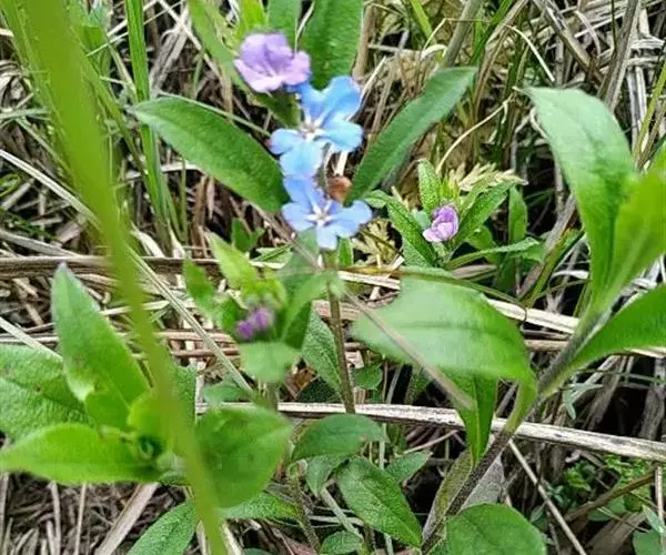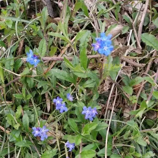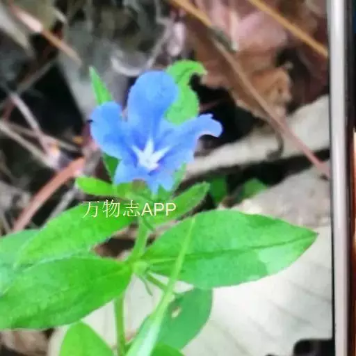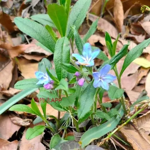 多年生匍匐草本。根褐色,稍含紫色物质。匍匐茎长可达30厘米,有开展的糙伏毛;茎直立,高5-25厘米。基生叶有短柄,叶片倒披针形或匙形,长3-6厘米,宽8-18毫米,两面都有短糙伏毛但下面毛较密;茎生叶与基生叶同形而较小,先端急尖或钝,基部渐狭,近无柄。花序长2-5厘米,有花1至数朵,苞片叶状;花有短花梗;花萼长约6.5毫米,裂片线状披针形,两面都有毛;花冠蓝色或蓝紫色,长1.5-1.8厘米,外面稍有毛,筒部与檐部无明显界限,檐部直径约1厘米,裂片宽倒卵形,近等大,长5-6毫米,全缘,无脉,喉部有5条向筒部延伸的纵褶,纵褶长约4毫米,稍肥厚并有乳头;雄蕊着生纵褶之下,花药长1.5-2毫米;花柱长约4毫米,柱头头状。小坚果斜卵球形,长3-3.5毫米,乳白色而稍带淡黄褐色,平滑,有光泽,腹面中线凹陷呈纵沟。花果期5-8月。