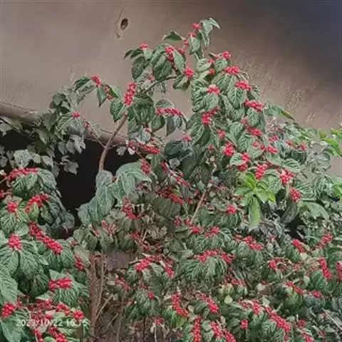果实圆形,直径6~7毫米,熟时蓝黑色,有光泽;种子卵圆形或椭圆形,褐色,长约3毫米,中部有1凸起的脊,两侧有浅的横沟纹。花期4~6月(秋季亦常开花),果熟期10~11月。