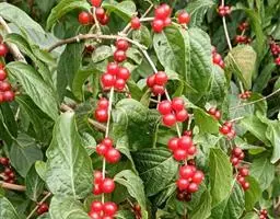 蓝靛果,忍冬科忍冬属落叶灌木植物。壮枝节部常有大形盘状的托叶;冬芽叉开长卵形;叶矩圆形两面疏生短硬毛;花苞片线形无毛,花丝上部伸出花冠;复果蓝黑色稍被白粉椭圆形;花期5-6月,果期8-9月。蓝靛果历史悠久,据传在古时,台江一带苗族就开始使用蓝靓果制靛染衣。蓝靛果分布于中国的东北、内蒙古、河北、山西、宁夏、甘肃、青海、四川及云南等地,在朝鲜、日本和俄罗斯远东地区也有分布。常生长于落叶林下或林缘荫处灌木丛中。蓝靛果喜光喜湿,对土壤的要求不严。主要繁殖方式为扦插、播种和分株繁殖。据《长白山植物药志》记载,蓝靛果味苦,性凉,可清热泻火、散痈消肿、治疗乳痈、肠痈、丹毒等热毒疮疡症。其果实中含有花色苷、胡萝卜素、花青素等化学成分;具有降血压、改善心肌缺血、提升儿童视力、防止皮肤衰老的功效。其果实可鲜食,可制饮料、果酱、果糕和果酒;也是天然的紫红色素,可用于食品添加剂。据报告,俄罗斯已把蓝靓果加工成宇航员专用的饮料。