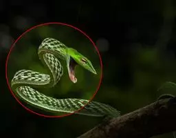 蛇岛蝮体色多以银色、灰色为基调,配合浅黑色的幼条体纹,头部双眼位置有黑色纹带,此类蛇被称为“黑眉蝮蛇”。