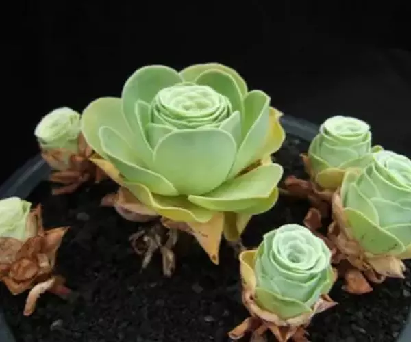 黑法师是景天科莲花掌属植物,自然界不存在分布。紫黑色的叶片呈莲座状层叠排列,给人以庄重神秘之感,…
