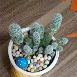 松霞是仙人掌科乳突球属的多年生肉质植物。单个球体小,呈圆筒状,暗绿色,疣状突起小,呈圆形,刺座无毛,…
