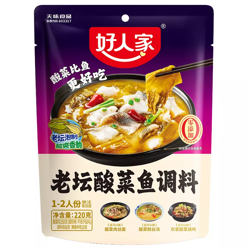 好人家是一个川菜风味系列复合调料产品,是天味食品针对四川特色菜肴和特色菜品,采用物理或生物技术研制开发成的方便型复合调味料。十几年来,产品系列不断丰富,产品口味也持续增加,产品具有浓郁的川味特色,口味清鲜醇浓并重,麻辣兼具。