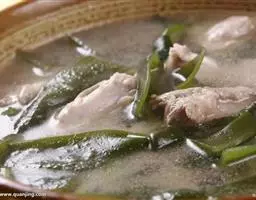 3.往锅内放适量的水,烧开后炖二小时(高压锅25分钟)后,加入萝卜,调入适量的盐、鸡精,再炖至萝卜酥烂即可