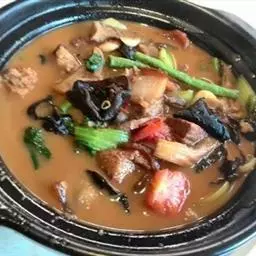淋入适量的清水,煮至沸腾,加入鸡精、白糖、盐、白胡椒粉、淋入生抽、料酒炖煮约一个小时