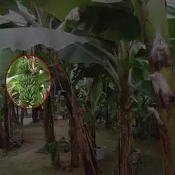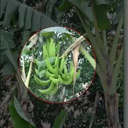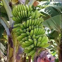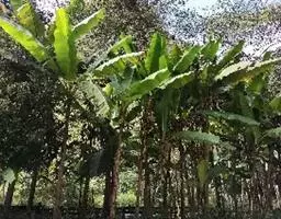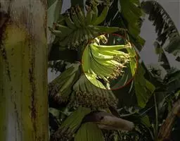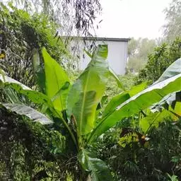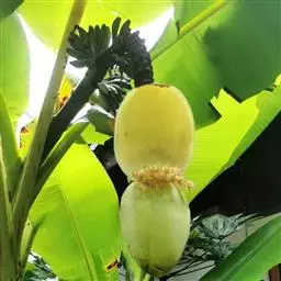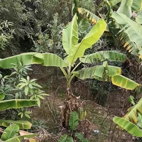 香蕉’),芭蕉科芭蕉属多年生草本植物,植株丛生,有匐匍茎;假茎浓绿有黑色斑点;叶片长圆形,…