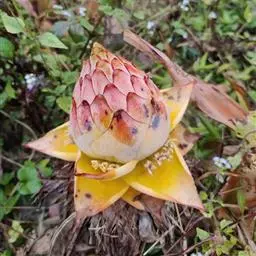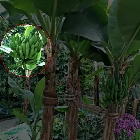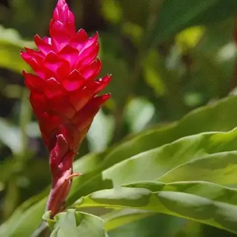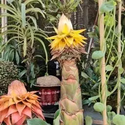 紫苞芭蕉形如一枝亭亭玉立、含苞待放的荷花,但却开在高高的芭蕉树上,这就是紫苞芭蕉。